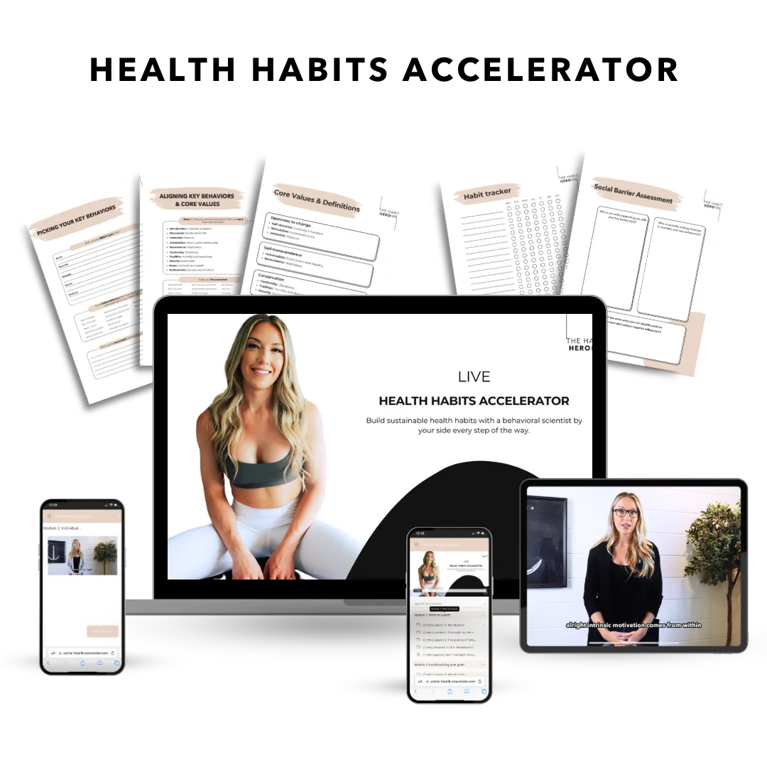Health Habits Accelerator is a 3-month program, but each module’s video will take 5 minutes or less out of your day. You will also have homework assignments that should only take you about 20 minutes tops. The remainder of your 3 months will consist of implementing the daily behaviors, self-reflection, and getting your questions answered on our bi-weekly group check-ins.
